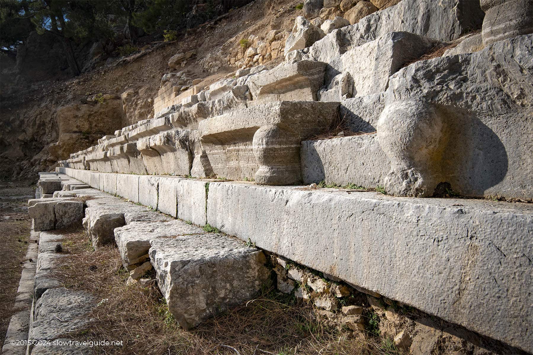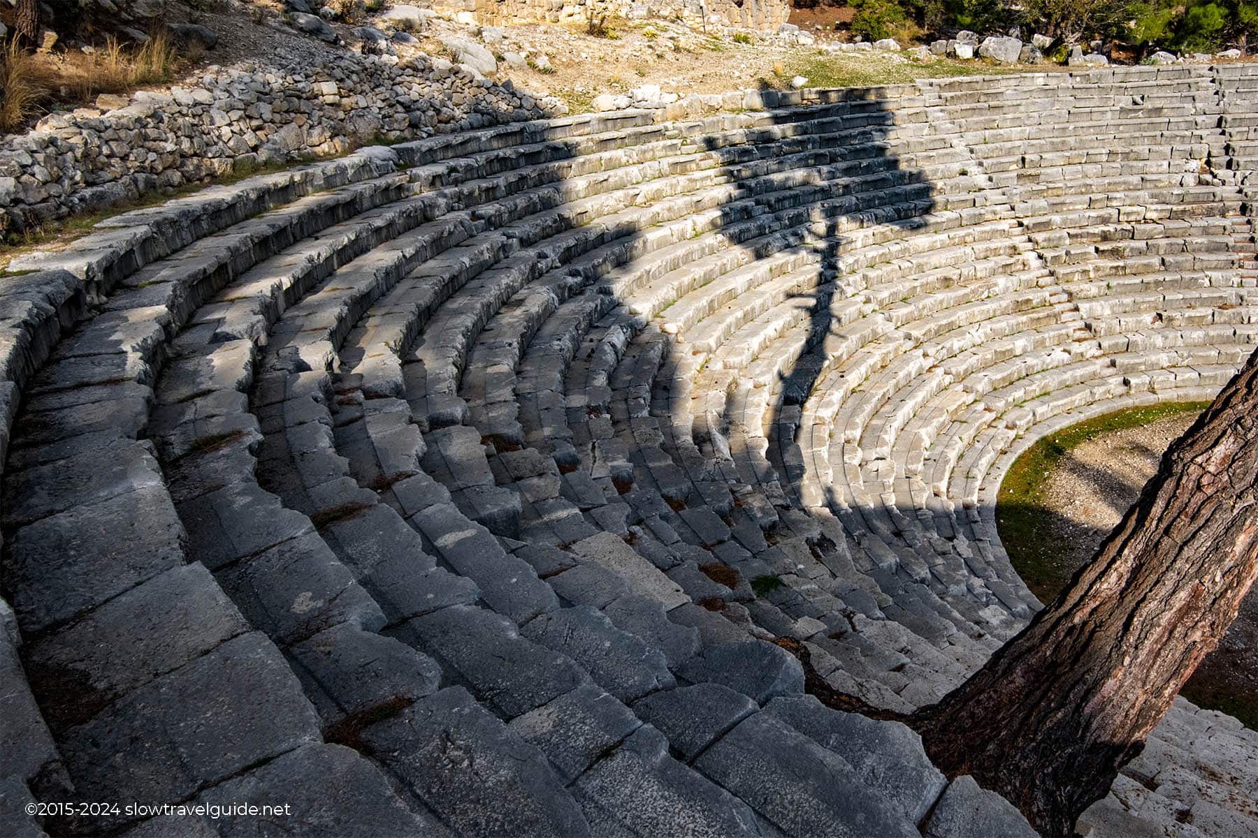 Tiyatro, Odeon’un hemen üst kısmında yer alıyor ve muhteşem bir şekilde korunmuş durumda. 20 sıra koltuktan herbirinin manzarası nefes kesici ve ne ilginçtir ki tiyatroyu aşağıdan göremiyorsunuz.