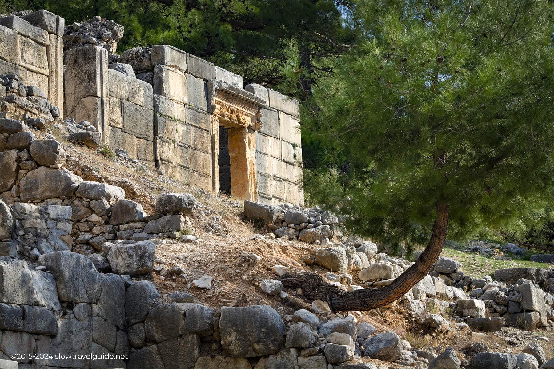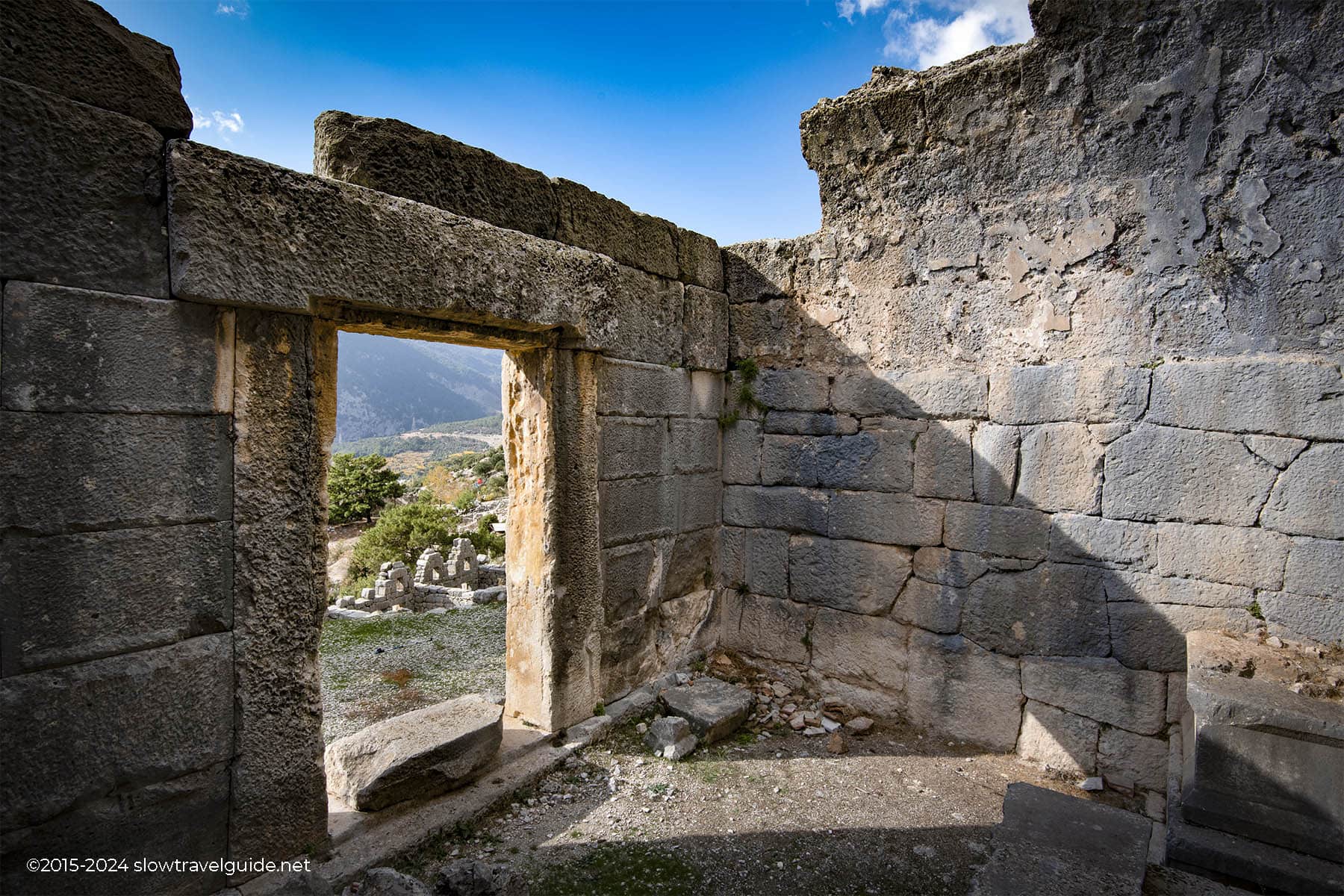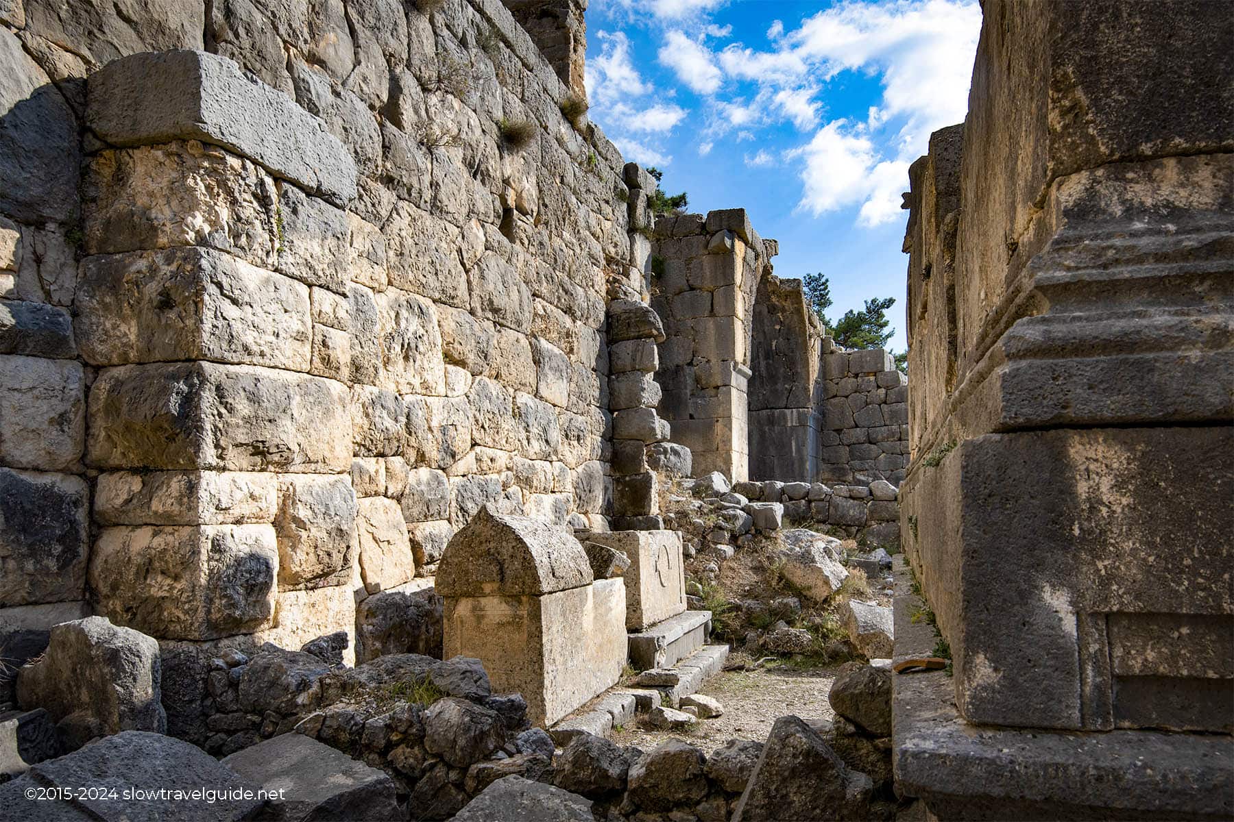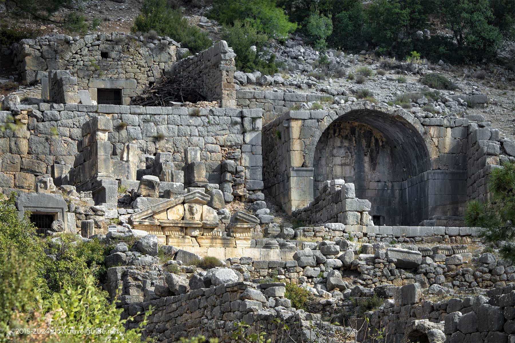Lahitlerin yanında tapınak mezarlarının yanı sıra görkemli beşik tonozlu mezarları da görebilirsiniz. Aşağıdaki vadiye özellikle de hamamlara ve Gymnasium’a baktığınızda manzara akıllara durgunluk verecek kadar güzel.