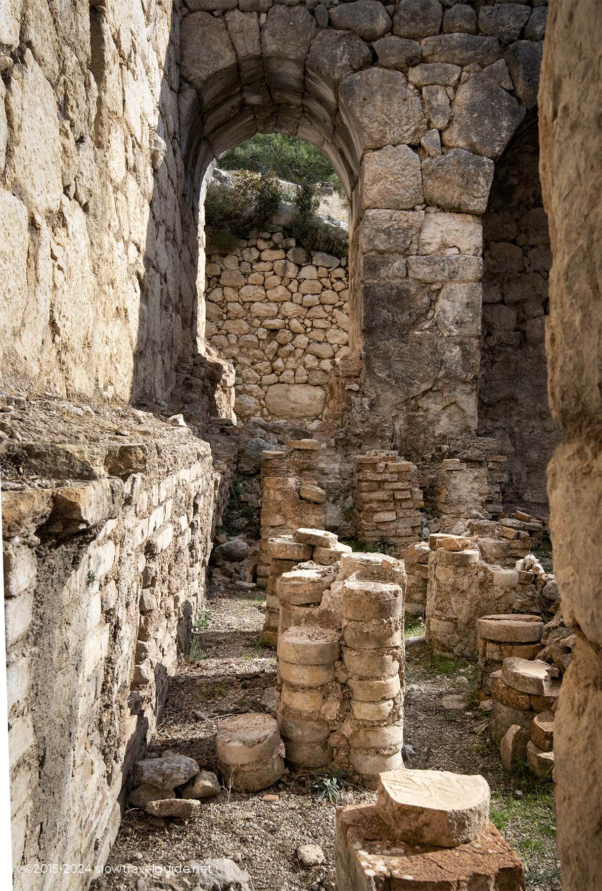 Arykanda turumuza kentin en belirgin binasıyla başlıyoruz. Alt terasta yer alan ve vardığınızda ilk göze çarpan yapılardan biri olan Hamam kompleksi. Likya’nın en büyüğüdür ve kısmen sağlamdır. Etkileyici kemerleri ve büyüleyici iç bölümü ile hamam kompleksi görsel bir şölen sunuyor.