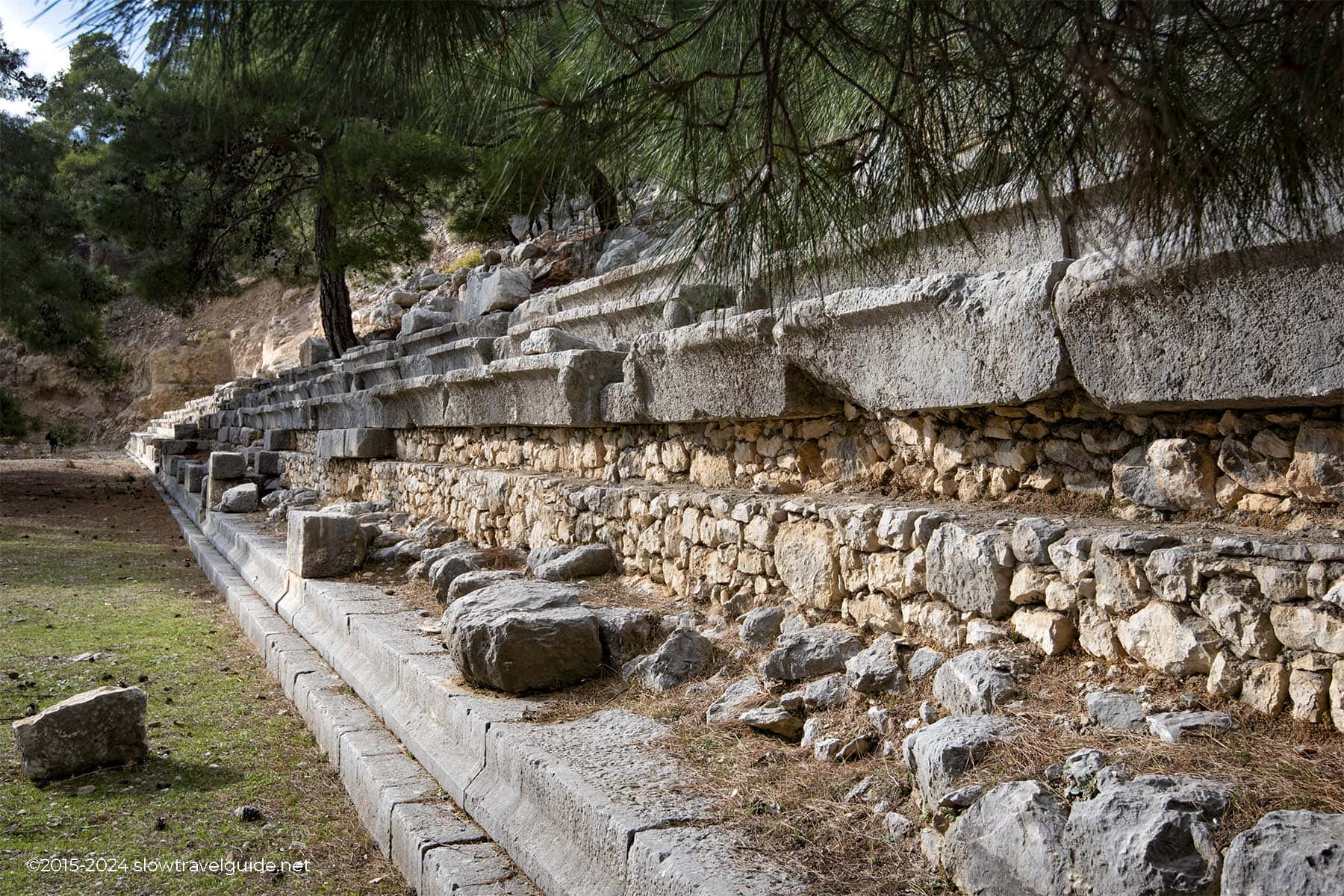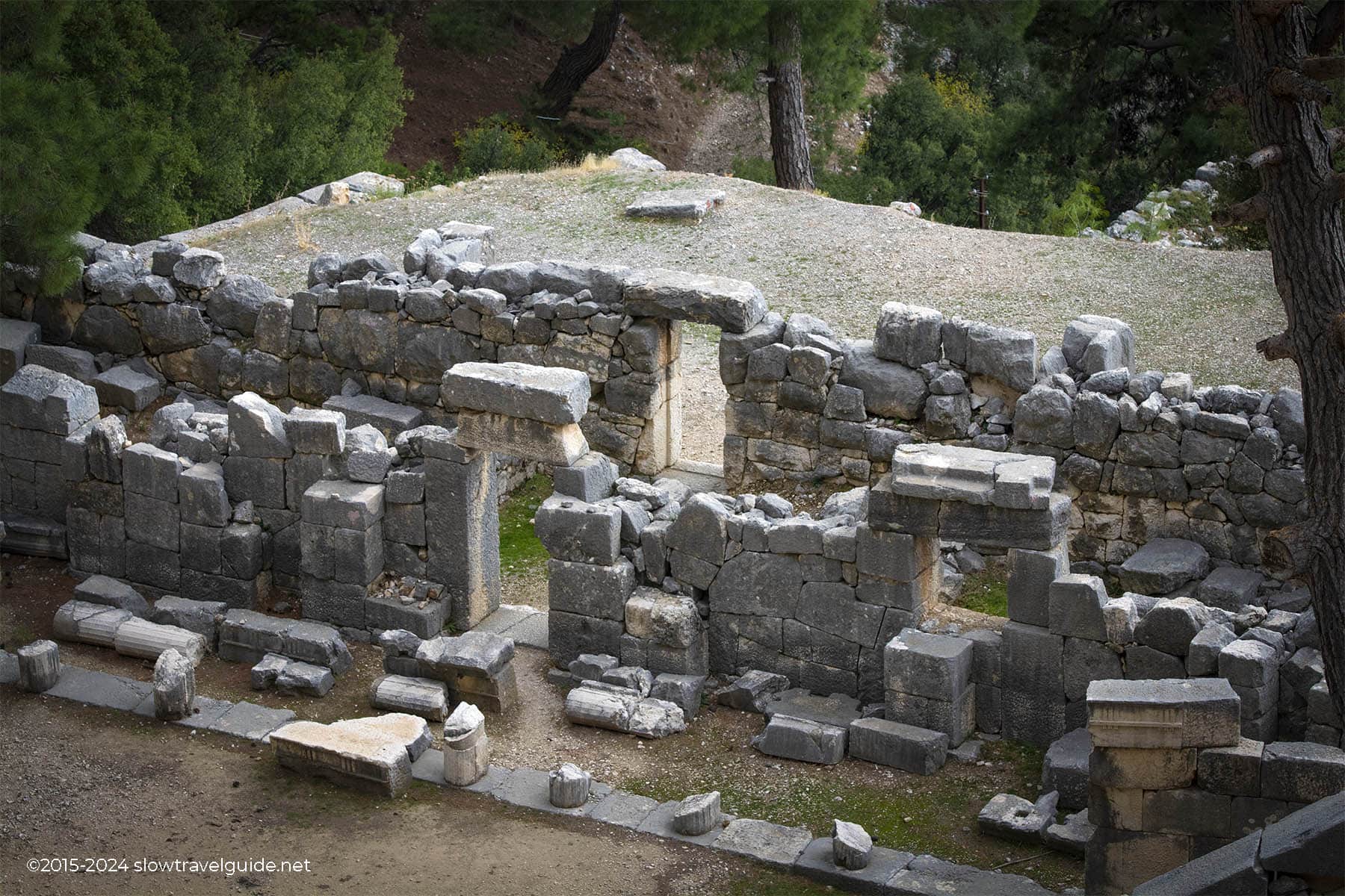 Stadyumdan ulaşabilirsiniz. Ziyaretimiz sırasında alanın bu kısmı ve kuzeybatıdaki Bouleuterion büyük ölçüde erişilemez durumdaydı.