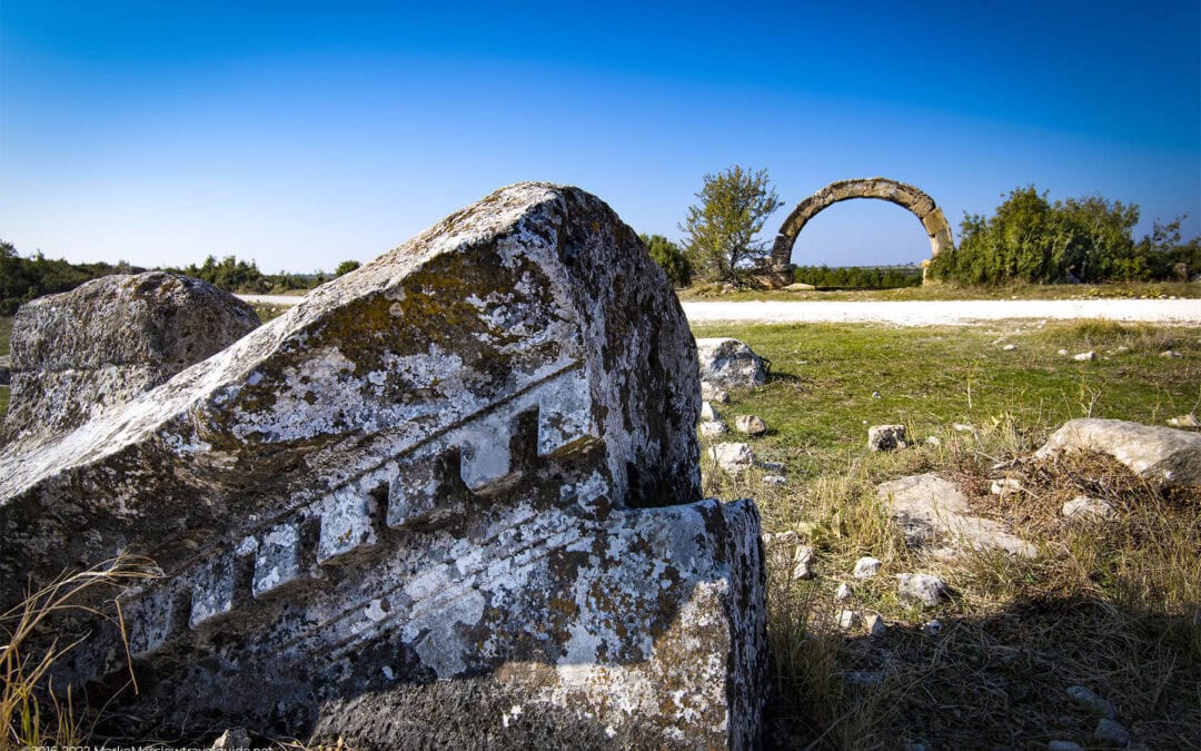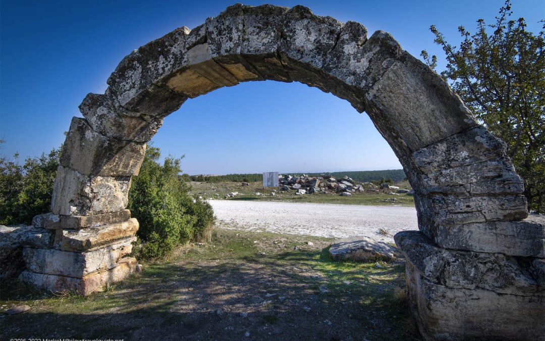 If you want to try visiting the Necropolis of Blaundos, this is where you need to start. Facing the arch of the aqueduct, walk past the Heroon in the direction of the valley.