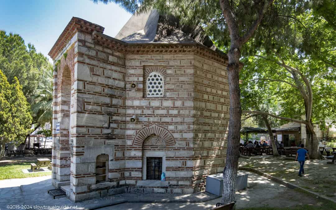İsa Bey Camii, Aziz John Bazilikasının hemen altında yer almaktadır ve neredeyse mistik denebilecek karakterde bir avluya sahiptir. Cami, Selçuklu mimarisinin özelliklerini taşır. İçini gezdiğimizde caminin çekiciliğinin avlusundan ve giriş kapısı üzerindeki süslemelerden kaynaklandığını düşündük. Avluyu çevreleyen arka duvarın yanında çok ilginç mezar taşları olduğunu da görebilirsiniz.