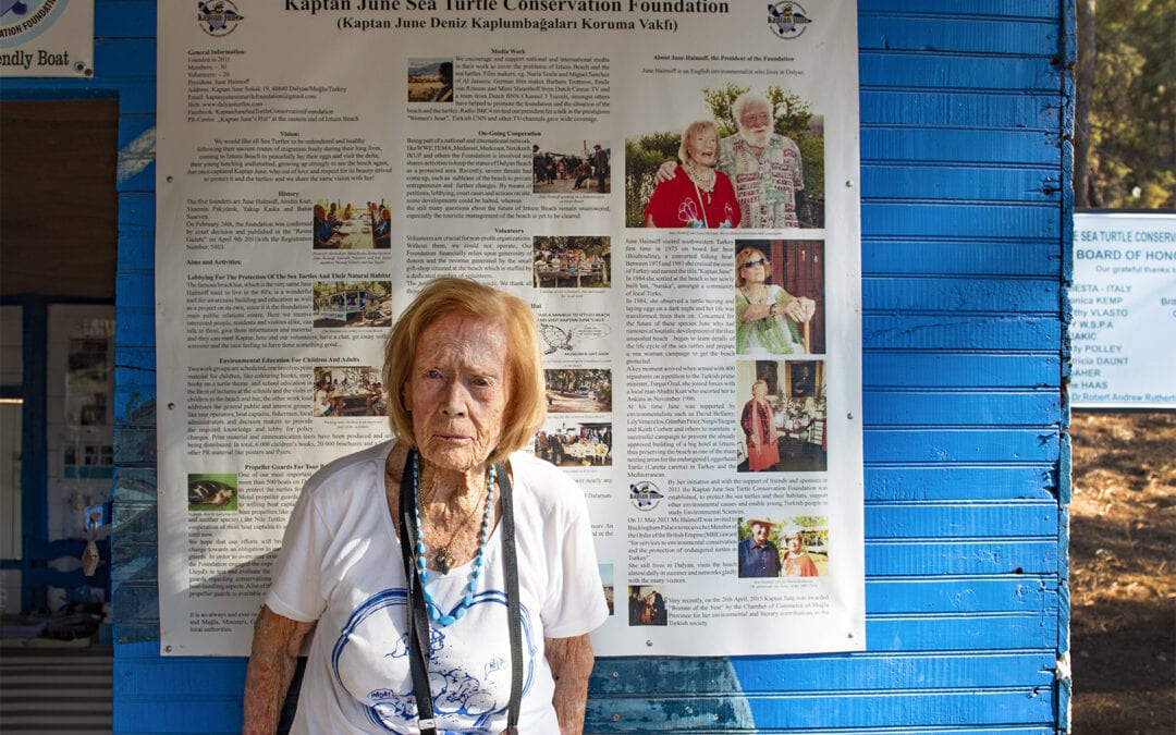 But Kaptan June, as June Haimoff is also called, didn’t stop there, she kept dedicating her life to turtle protection, which led to the foundation of the June Haimoff Sea Turtle Conservation Foundation as well as the creation of the Turtle Rehabilitation Center (DEKAMER) run by the Pamukkale University in Denizli. Kaptan June still has a hut next to the beach where she raises awareness on turtle habitat safety and protection, amongst other things. We had the honor of meeting the then 95-year-old June Haimoff in person and witnessed her love and determination for this project.