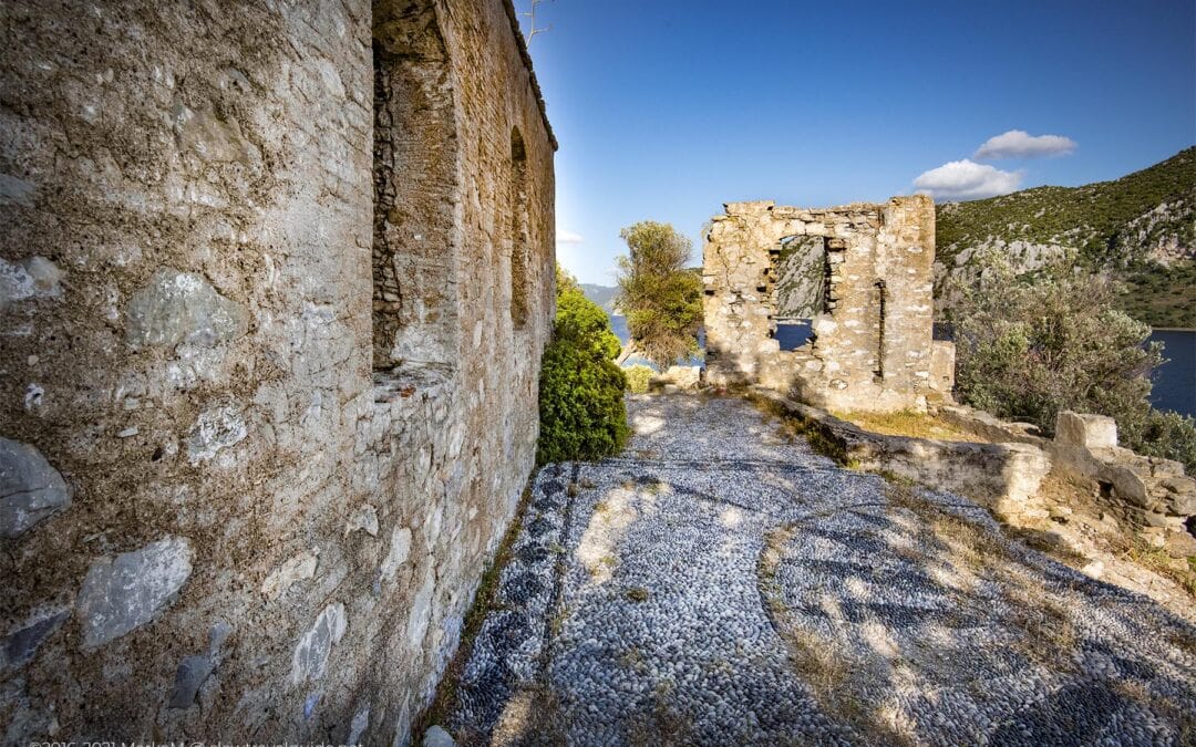The path leading to the church is easy to walk, and from there, you can see amazing views. Outside, the mosaic cobblestone courtyard is work of art, especially with the blue water and the Bozburun Peninsula as a background.