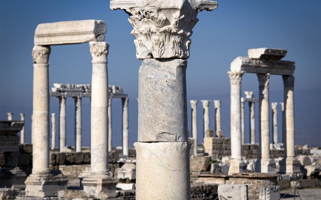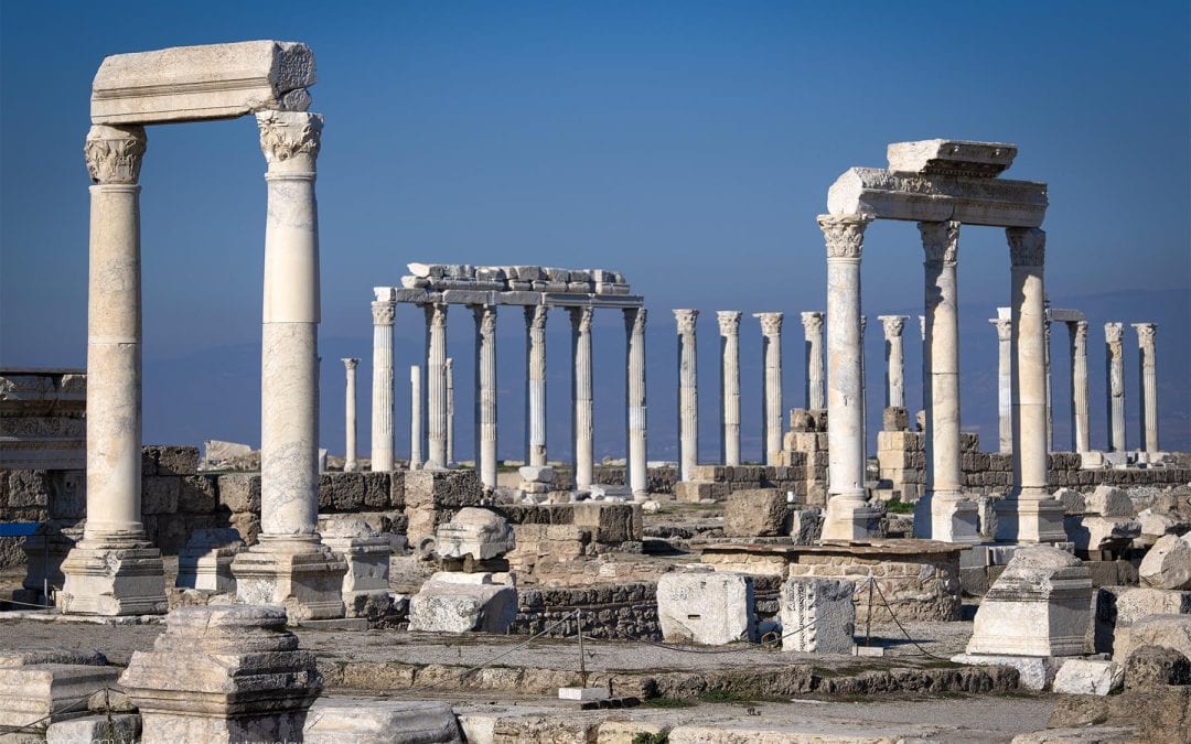 Laodicea has one of the largest stadiums in Anatolia; there are two theatres, four baths, five agoras, fountains, a bouleuterion, several temples and colonnade streets. Not everything has been rebuilt, but those rebuilt landmarks are awe-inspiring.