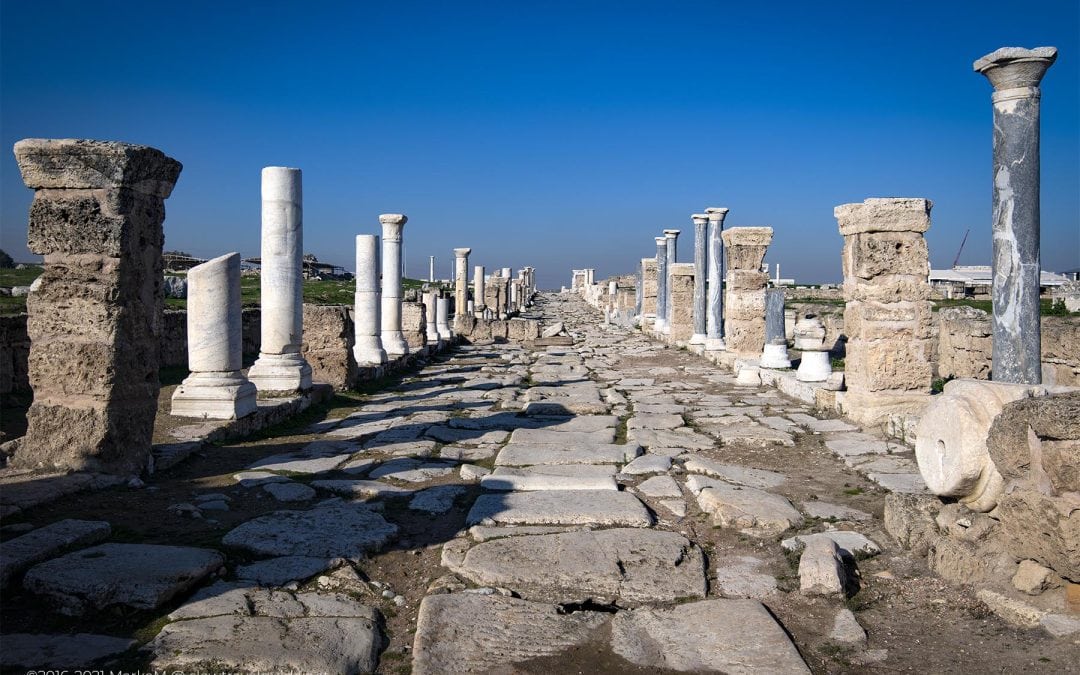 Laodicea is an impressive site with many exciting features. Besides the fact that it has many columns that have been re-erected, sitting in the many attractive collonaded streets.