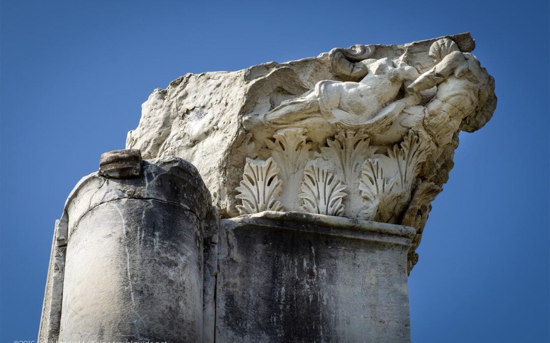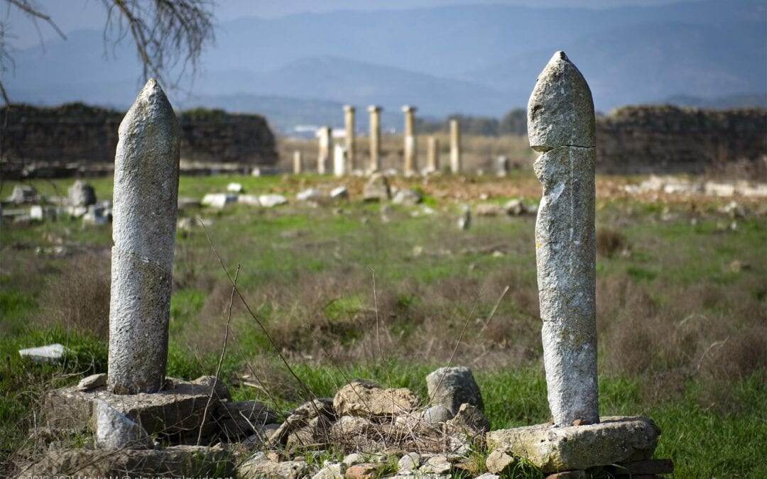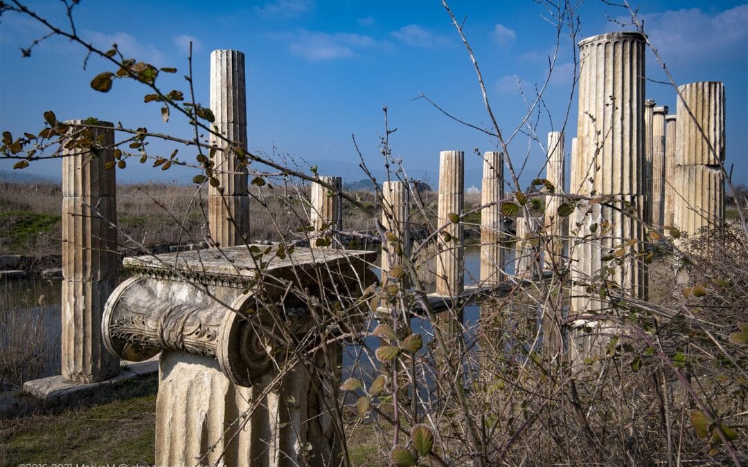 The main feature of Magnesia is the Temple of Artemis. Today, it’s mostly a substantial marble-floored plaza, a pile of stones and broken columns, but it’s clear that it was once the city centre in its heydays. The triangular peaks and temple gables are reconstructed on the Temple’s south side, the first to be seen when entering the site.