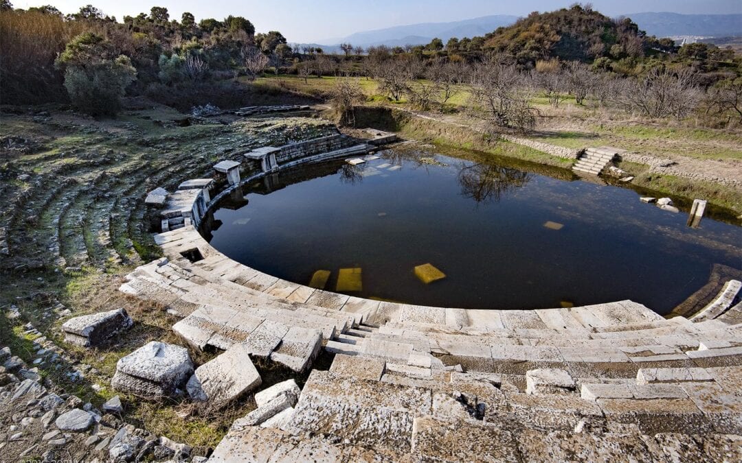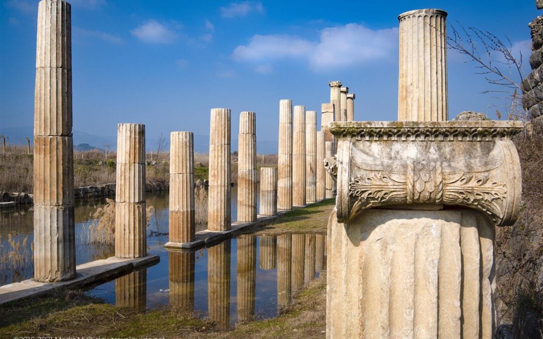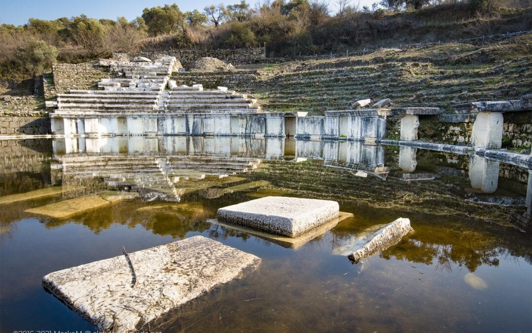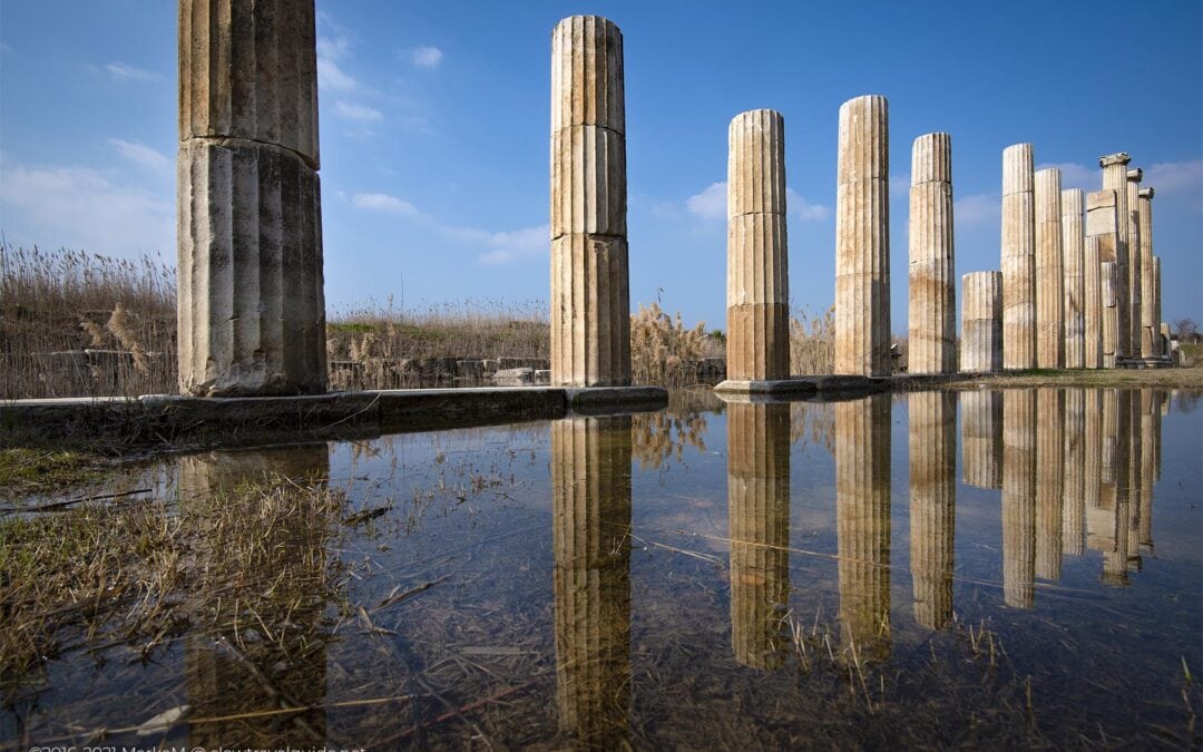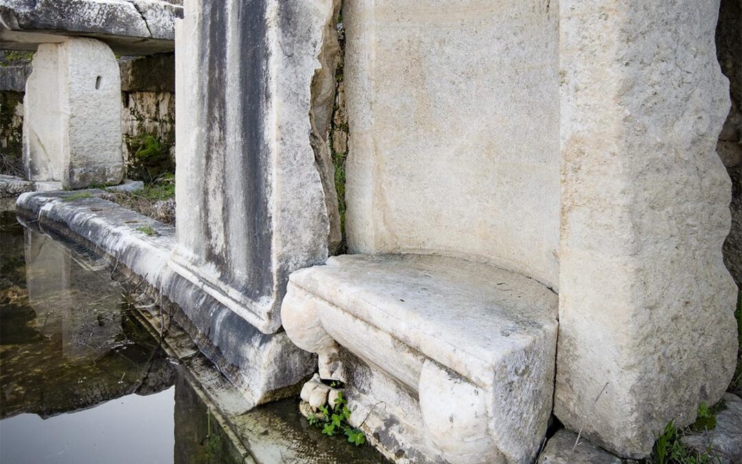 The marble floor of Agora is visible through the water, and we feel that it brings extra magic and romance to the whole environment. Only a tiny part of the original 26.000 square meter bazaar was unearthed. The rest is still hidden under a 3-meter thick layer of silt. The bazaar is dedicated to sacred ceremonies, and the Temple of Zeus is located in the southern part of the bazaar.