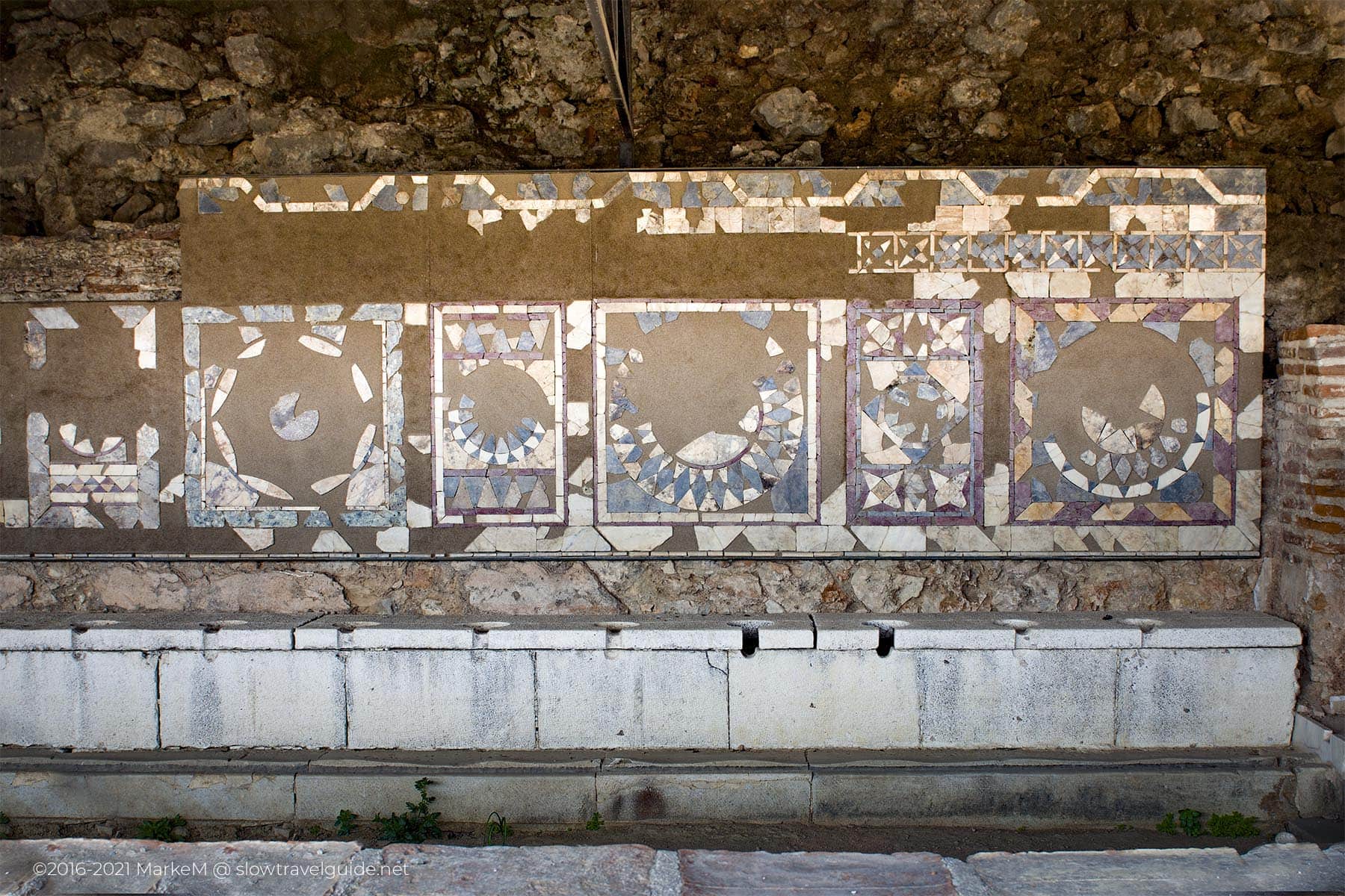 You’ll find the remains of the Altar of Artemis on the west side of the Temple, which is surrounded by stone columns on three sides. At the far end, to the right of the Propylon, the old public latrines are now covered with a metal roof.