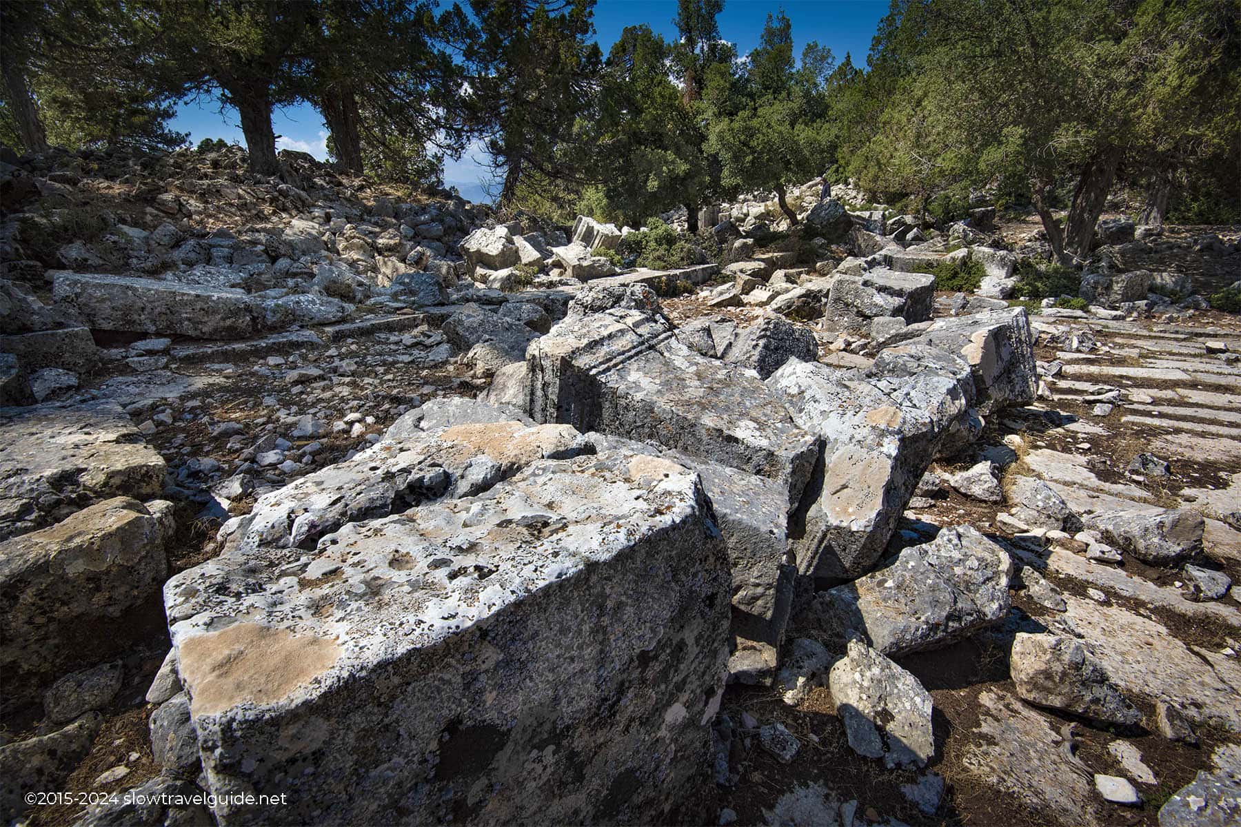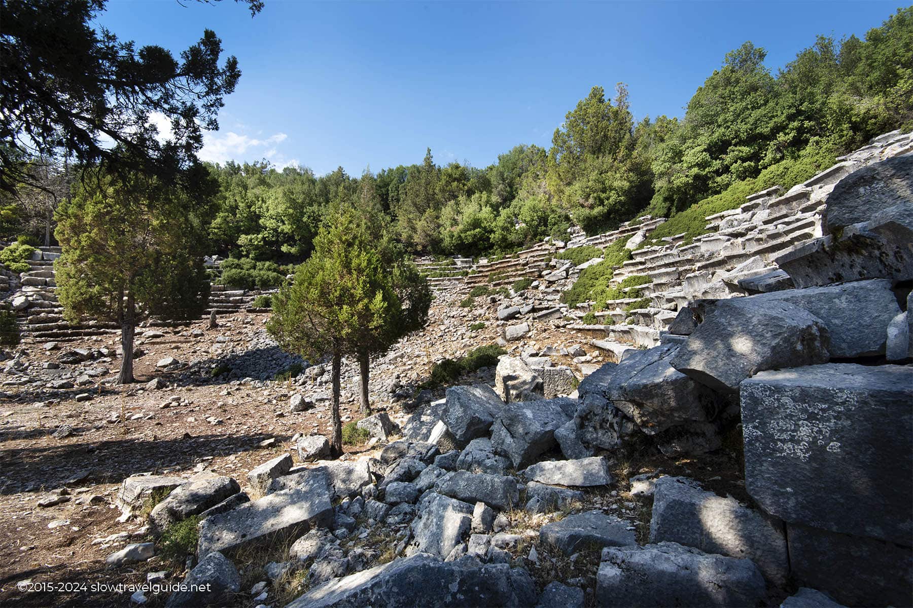 The Agora (some source also call it the Esplanade) is a substantial stretch of marble floor that is partially overgrown and surrounded by forest and rubble. It is a beautiful part of the site where you can sit in the shade wondering about how this place must have looked like some 2.000 odd years ago.
