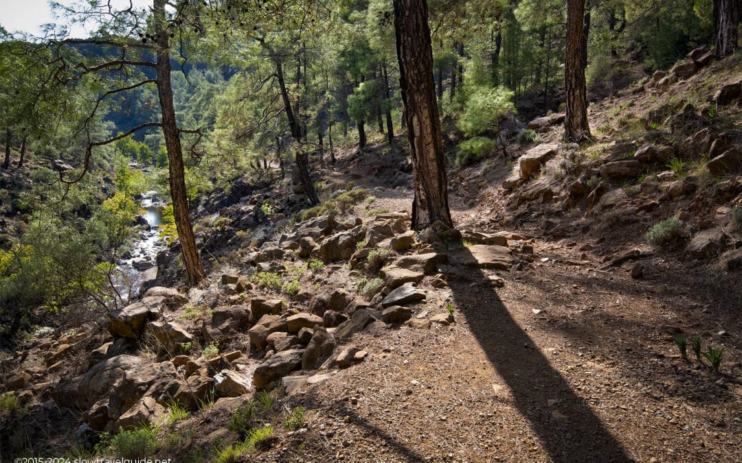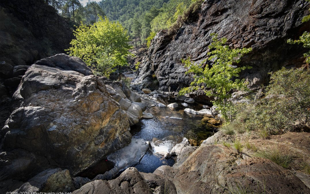 Make sure to look out for the markings and not to miss any. You will have to cross the stream on two different occasions. Not a major issue, but this walk, while short, is not suitable for people with mobility issues. Alternatively, you could make turn this into a light version of canyoning and keep following the stream below instead of the land trails. If you do, make sure to wear appropriate footwear, as the terrain is slippery and rocky.