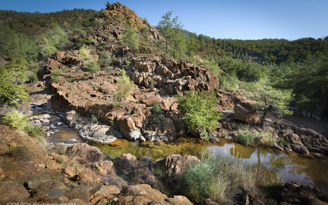 It takes only a brief walk to reach the Toparlar waterfall pool. There isn’t a parking lot adjacent to it! (Fortunately!) The closest parking lot is located directly off the main D400 route that runs from Muğla to Fethiye. Drive past Toparlar and keep an eye out for the sign pointing to the Toparlar waterfall on your right if you’re going from the Köyceğiz direction.