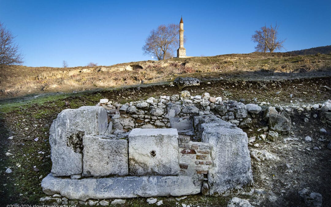 You may take in the breathtaking views while strolling around Tabae, and you’ll also get the delight of discovering a relatively unexplored location. Following some excavation and repair work, a 114-meter-long canal—which was dry when we investigated it—or an extremely well-preserved, inaccessible Roman-era cistern were discovered. To view a photo of it on page 8 of this edition, click here. However, Tabae offers more than just the Cevher Paşa mosque and the views. You will be enthralled with the Pazar Yeri Mosque Ruins, particularly with the intact minaret.