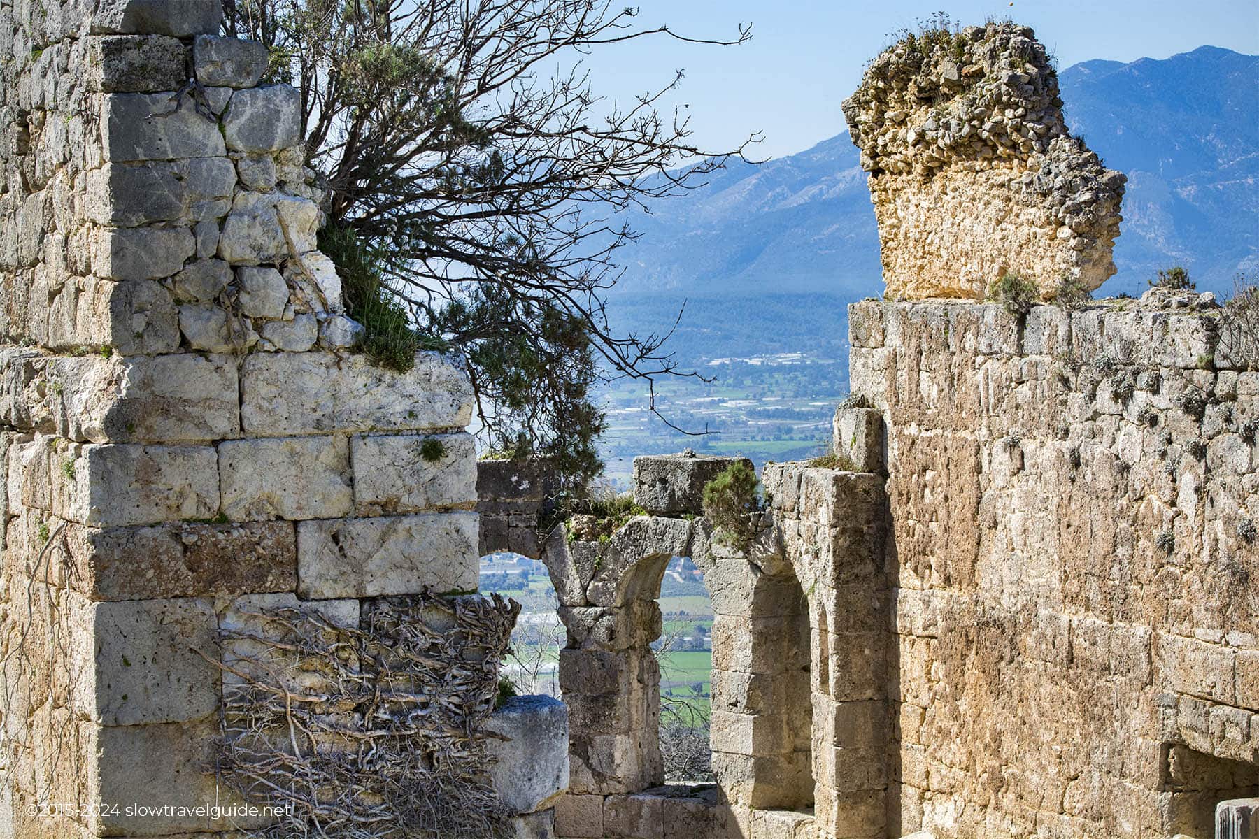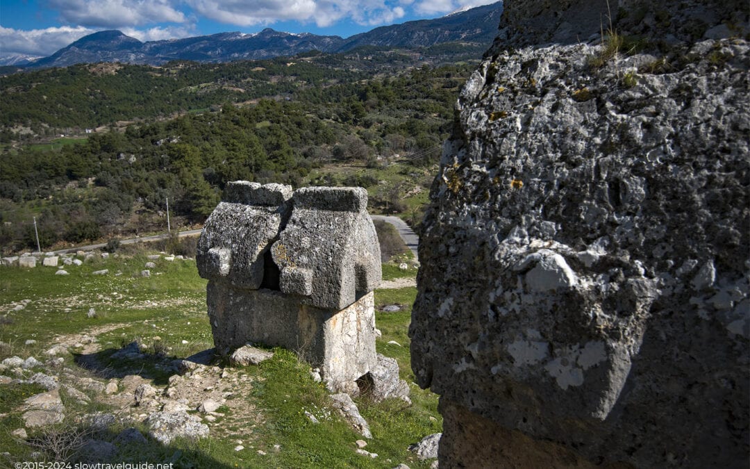 Tlos (or Yakaköy nowadays) lies in the hinterlands, nearby the towns of Fethiye and Kalkan. You reach it by leaving the D400 connecting both cities. There are road signs to help you when in doubt. There is a small entrance fee to be paid.