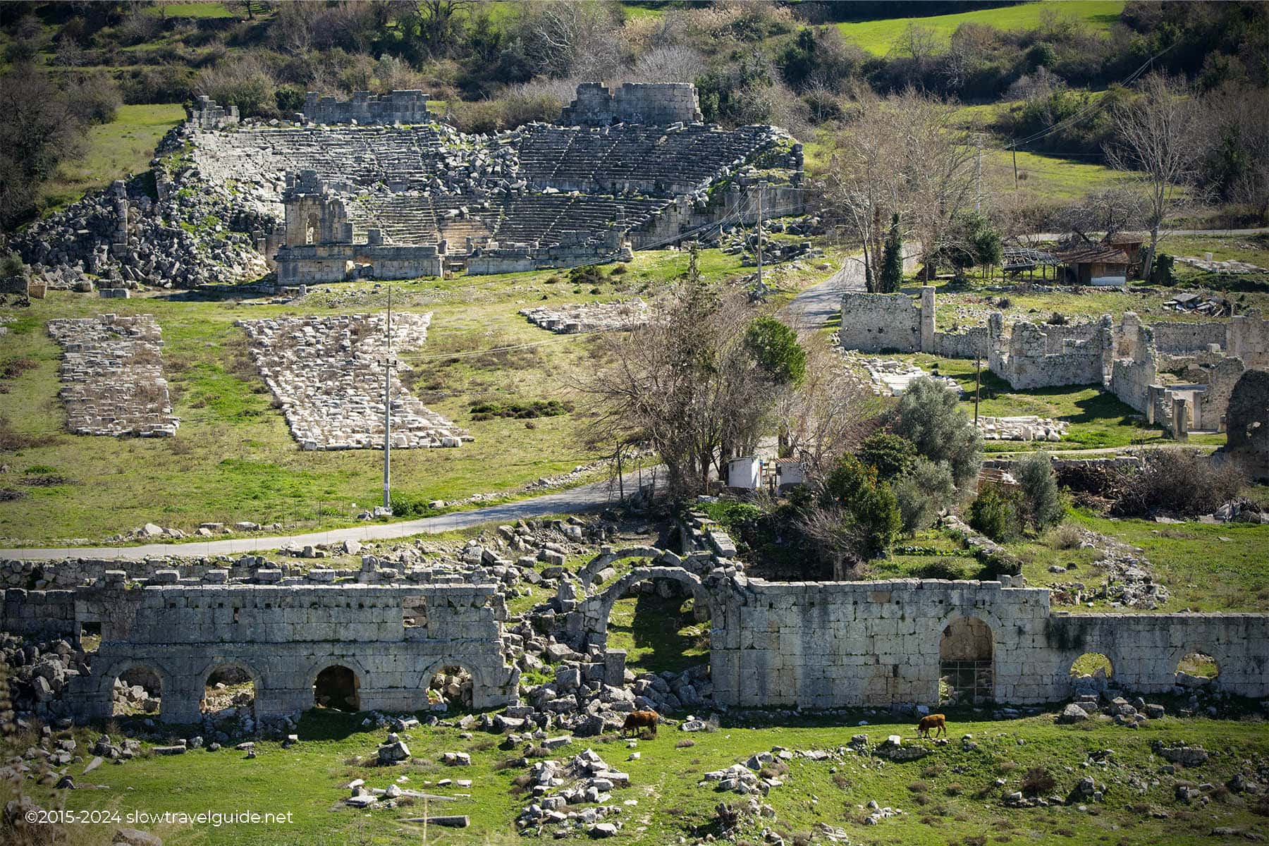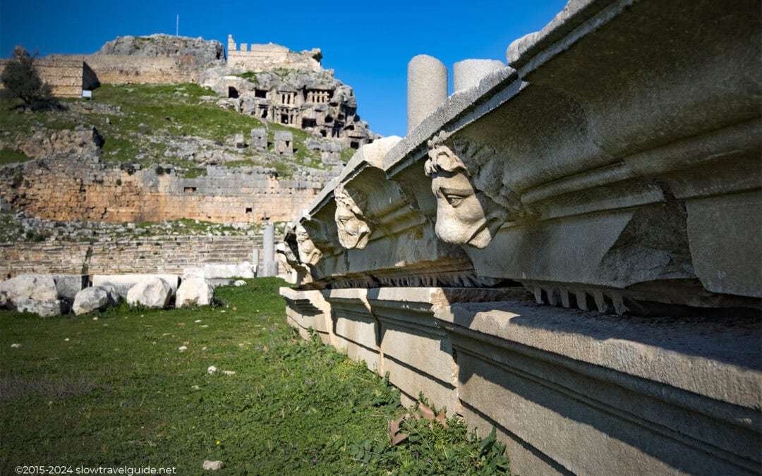 And while the site is still relatively untouched, many of the structures have stood the test of time. Apart from the almost obligatory theater, you will find a stadium that could seat about 3.500 spectators, a pool, a Byzantine Basilica, a temple dedicated to Kronos, several Roman baths, a Necropolis, and an Acropolis and Citadel perched on the steep cliffs covered with Lycian Rock Tombs and sarcophagi. And while Tlos is stretched out, it has a lovely and intimate feel.