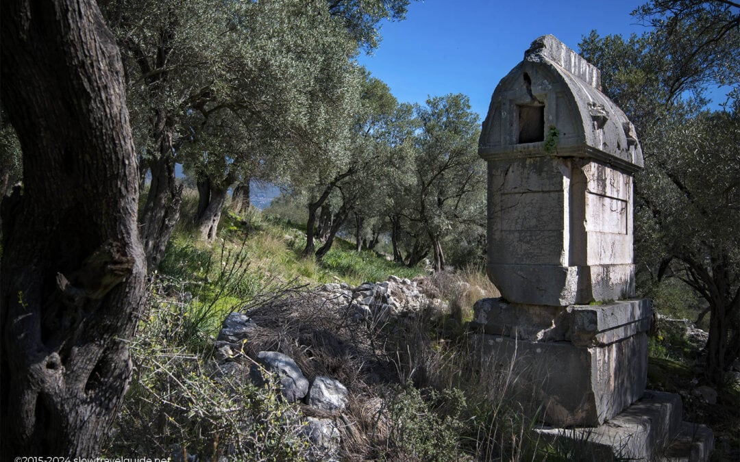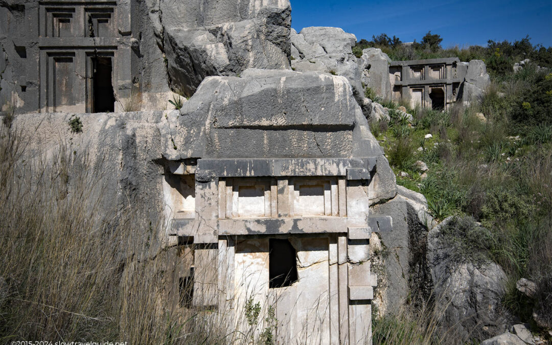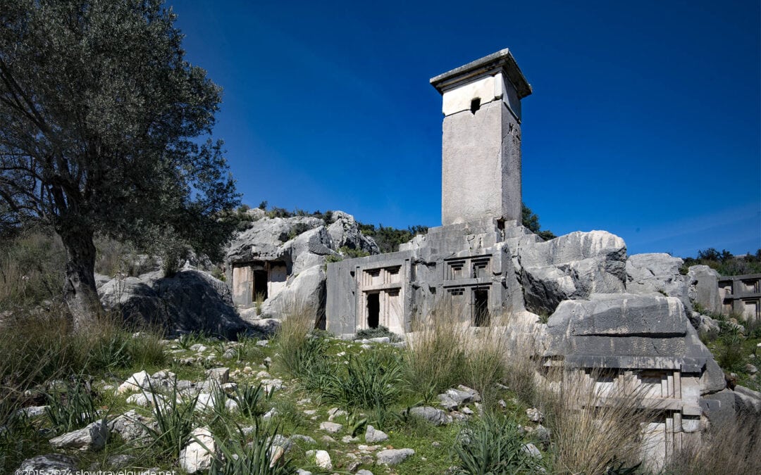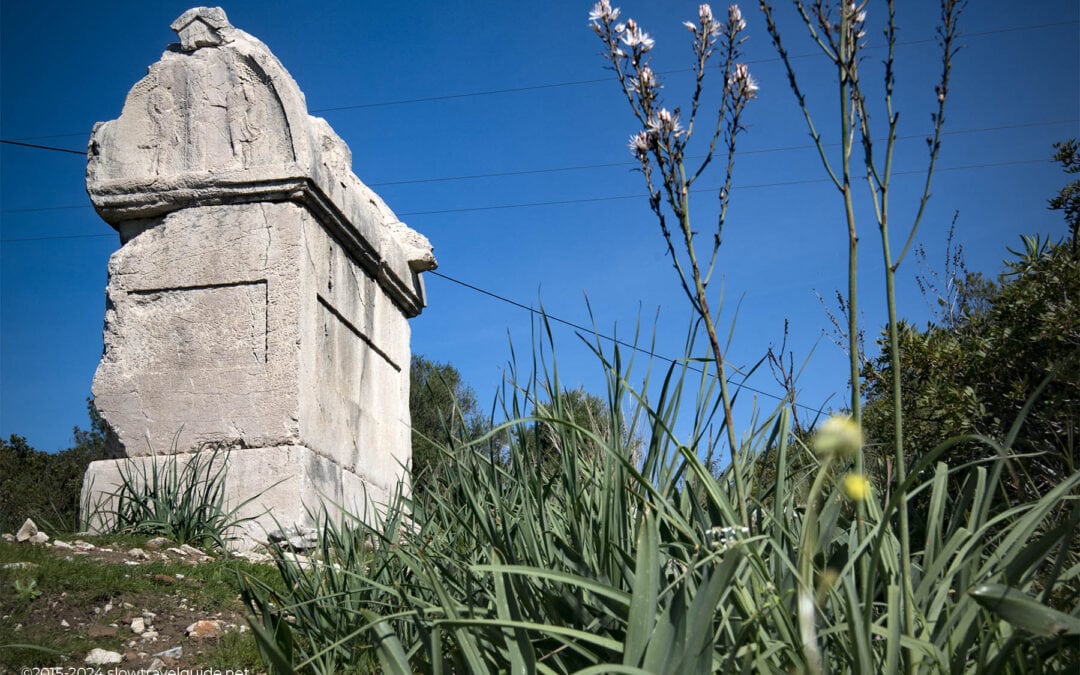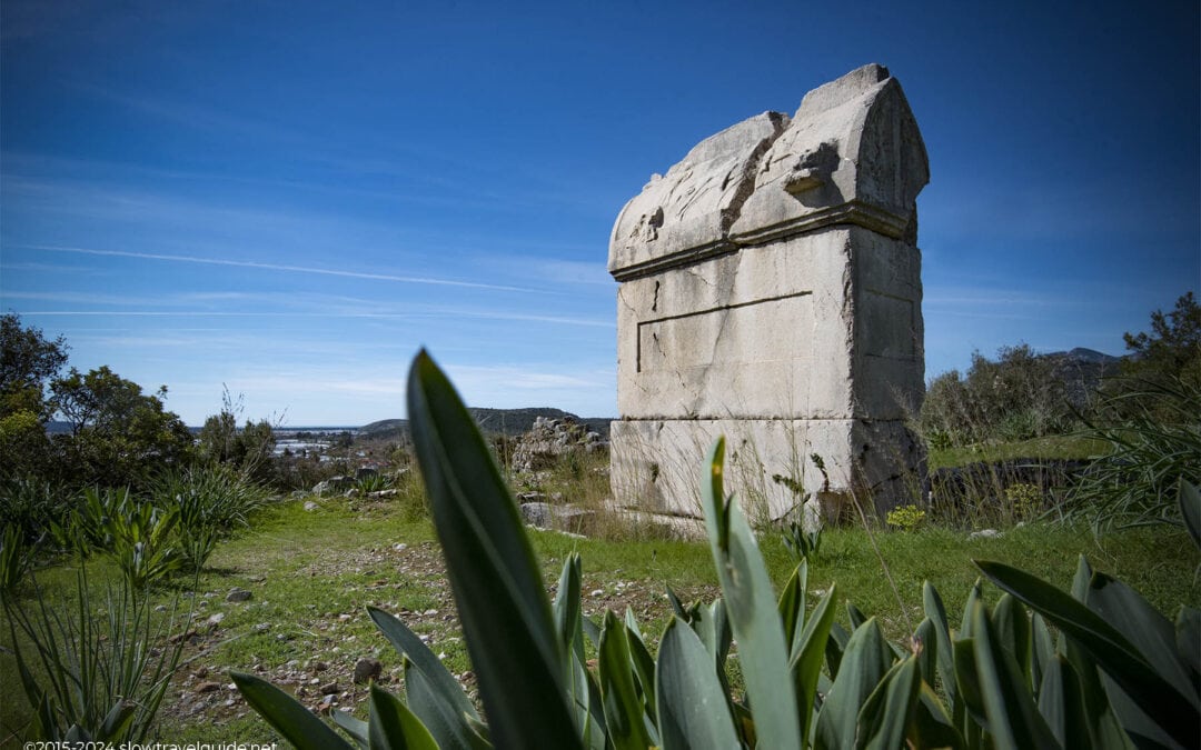 A MAGNIFICENT NECROPOLIS: Necropoli are found at nearly all Lycian sites; Sidyma, Tlos, and Pınara contain some exquisite examples. Xanthos is no exception; it’s tiny but exquisite. We think it’s the most fascinating area in the entire archaeological site. It is worth hiking and deviating from the trail to visit the Necropolis. The well-preserved Lycian sarcophagi, pillar tombs, and rock tombs are tucked away amidst vegetation and olive trees.